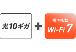 - お客さまの使用機器(1台)がWi-Fi7対応かつ、2×2のアンテナ・6GHz対応の場合、無線接続時の技術規格上の最大速度は概ね11.5Gbps。