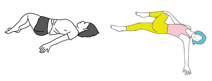 上を向いて寝転んだら、膝を立てて両足を揃え、左に倒しましょう。この時上半身は上向きのままで固定して、下半身だけを動かします。倒したら再び起こして、次は右に倒します。この動きを10回程度繰り返しましょう。